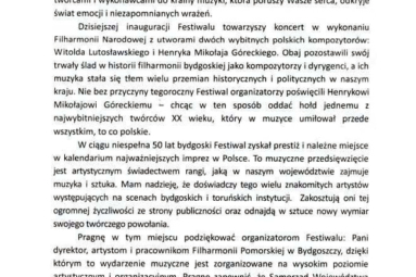 Podczas Festiwalu w foyer Filharmonii czynna będzie wystawa WILNO MIłOSZA zorganizowana przez Muzeum Okręgowe im. Leona Wyczółkowskiego w Bydgoszczy przy współpracy Towarzystwa Przyjaciół Muzeum Okręgowego im. Leona Wyczółkowskiego w Bydgoszczy. Prezentowane fotografie pochodzą ze zbiorów Biblioteki Uniwersyteckiej w Toruniu.