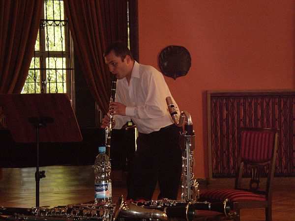 W wykonaniu muzyków mogliśmy usłyszeć utwory od baroku po współczesność: I Sonatę g-moll na skrzypce solo Jana Sebastiana Bacha, Czardasz Vittorio Montiego w opracowaniu na skrzypce, Homnage – utwór napisany przez jednego z najpopularniejszych kompozytorów hiszpańskich, przedstawiciela kierunku narodowego, impresjonizmu i neoklasycyzmu Manuela de Falla, w hołdzie dla twórczości Claude’a Debussy’ego, Arie na klarnet z towarzyszeniem fortepianu Eugeniusza Bozzy, współczesnego kompozytora i dyrygenta, oraz Trio na klarnet, skrzypce i fortepian Arama Chaczaturiana. Młodym muzykom podczas tego spotkania akompaniowała Adriana Kortas, dobrze znana postać w Filharmonii Pomorskiej, prelegentka i akompaniatorka audycji muzycznych dla dzieci i młodzieży organizowanych w Filharmonii, a od niedawna współorganizatorka cyklu koncertów dla dzieci pt. „Od brzuszka do uszka maluszka”. Młodzi melomani mieli wyjątkową okazję obejrzeć z bliska całą kolekcje klarnetów Pana Przemysława oraz spróbować gry na skrzypcach Pana Marcina, co było nie lada frajdą dla młodzieży. Spotkanie wzbudziło duży entuzjazm i mamy nadzieję, że kolejne będą równie interesujące i udane.