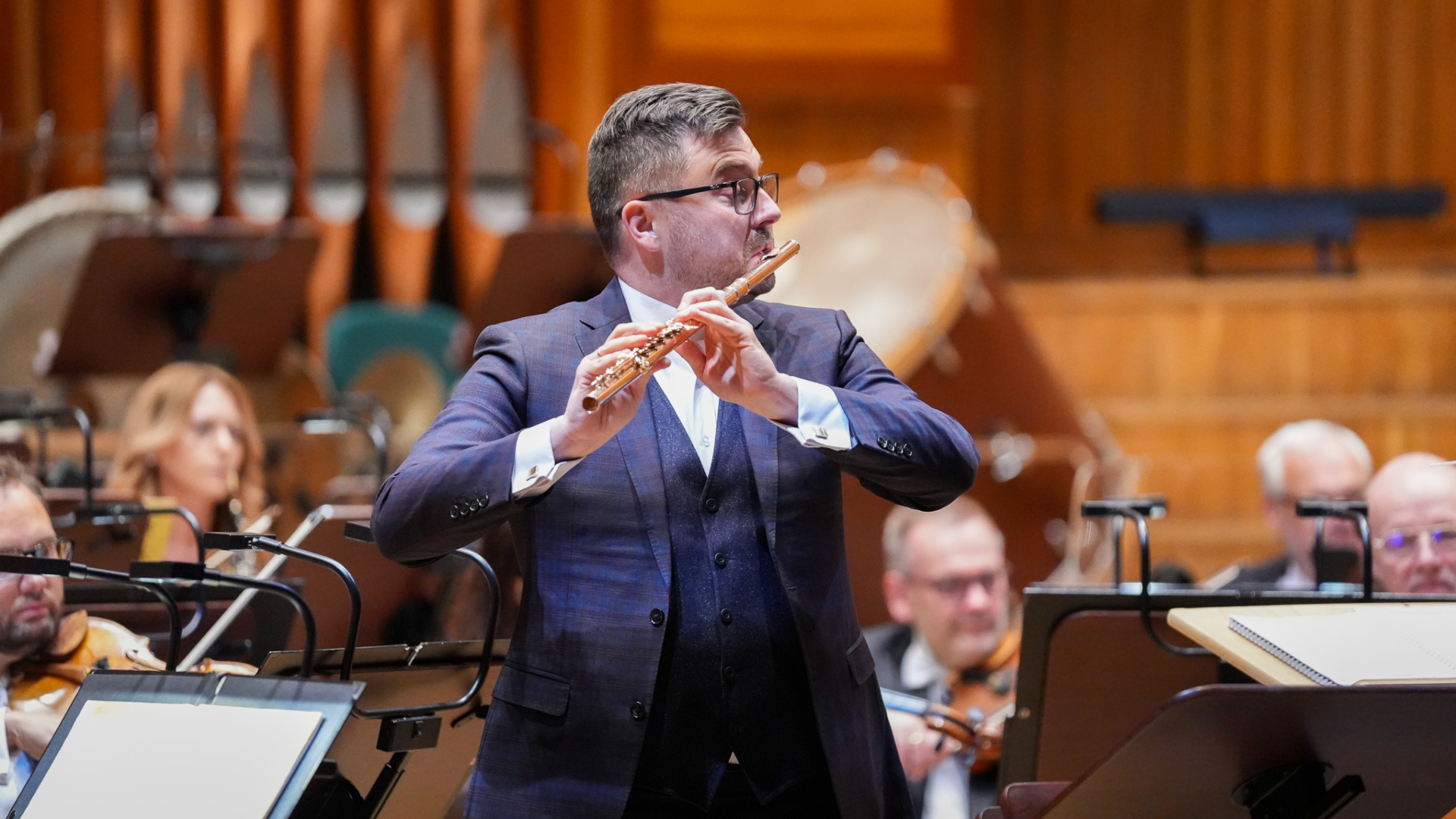 Chociaż kompozycje na flet solo zajmują skromne miejsce w obszernym dorobku W.A. Mozarta, to Koncert fletowy G-dur KV 313 jest prawdopodobnie najbardziej znanym przykładem utworu na ten instrument. Jak zauważa niemiecki muzykolog Rudolf Gerber, 22-letni Mozart stworzył arcydzieło w ramach wysoko kultywowanej muzyki dworskiej, w której w doskonały i wszechstronny sposób zostały pokazane możliwości techniczne instrumentu oraz znakomicie oddany został duch rokokowej estetyki. Partie solowe wykona wybitny polski flecista – Łukasz Długosz, laureat wszystkich ogólnopolskich konkursów fletowych oraz zdobywca czołowych nagród na kilkunastu konkursach międzynarodowych w tym tak prestiżowych jak: 8. Międzynarodowy Konkurs Fletowy im. Jean Pierre Rampala w Paryżu, 3. Międzynarodowy Konkurs Fletowy im. Carla Nielsena w Odense. Artysta wpółpracuje z wieloma renomowanymi orkiestrami. Jako solista występował m.in.: w Musikverein Goldener Saal oraz Konzerthaus w Wiedniu, Konzerthaus w Berlinie, Gasteig Carl Orff Saal oraz Herkulessaal w Monachium. Artysta nagrał 70 albumów płytowych, które zostały wysoko ocenione przez krytykę europejską i za które otrzymał wiele prestiżowych międzynarodowych nagród fonograficznych, w tym wielokrotnie nagrodę International Classical Music Award (ICMA).