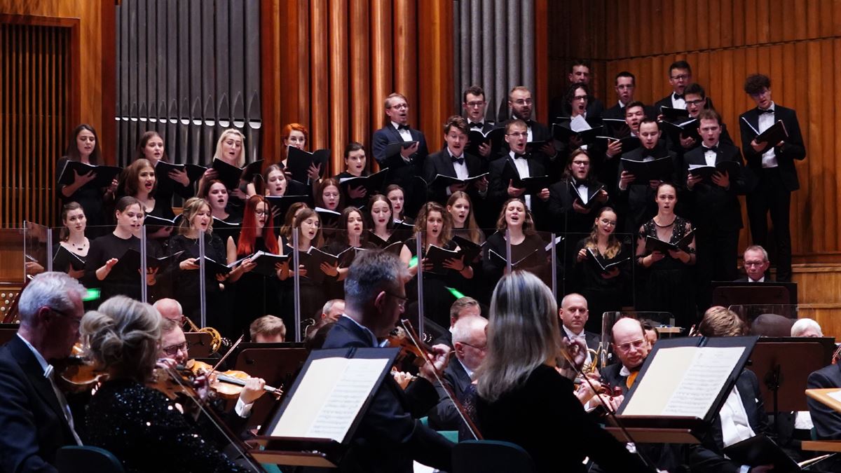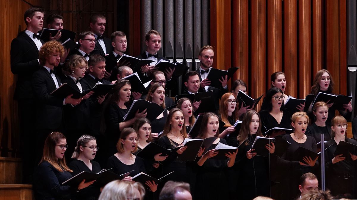 Chór Akademicki Uniwersytetu Kazimierza Wielkiego w Bydgoszczy przygotowany przez Bernarda Mendlika i Benedykta Odyę
