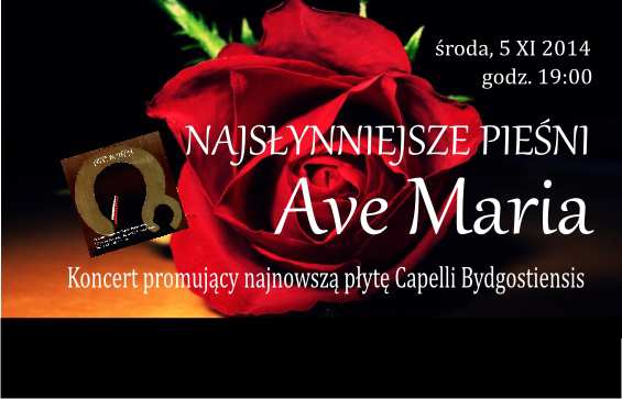 Koncert będzie prezentacją ostatniego przedsięwzięcia fonograficznego Capelli, którą jest płyta pt. Ave Maria, zawierająca 10 utworów z różnych epok, począwszy od kompozycji Florentczyka Luigiego Cherubiniego (1760–1842), kończąc na współczesnych – autorstwa argentyńskiego kompozytora Astora Piazzolli czy jednego z najwybitniejszych współczesnych twórców muzyki filmowej Michała Lorenca, których zainspirowały słowa modlitwy „Ave Maria”.