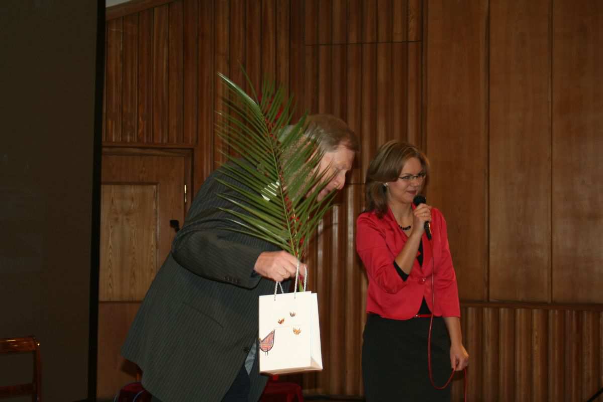Dyrygent pochodzi ze Śląska opowiedział nam o swoim rodzinnym domu i mieście. Następnie usłyszeliśmy o przygodzie w Państwowej Wyższej Szkole Muzycznej w Warszawie gdzie studiował wiolonczelę u Arnold Rezler, obecnie swojego teścia i dyrygenturę u Bohdana Wodiczki. Jako wiolonczelista grał w Orkiestrze Filharmonii Narodowej w Warszawie, w zespole kameralnym “Con moto ma cantabile” i w Kwartecie Wilanowskim. Pasją do wiolonczeli zaraził swojego syna. Jako dyrygent zaczął pracować w 1974 i od tego czasu wiolonczelę zamienił na batutę. Kierował orkiestrami w Warszawskiej Operze Kameralnej, w Teatrze Wielkim w Warszawie, orkiestrą warszawskiej Akademii Muzycznej, był dyrektorem artystycznym Teatru Muzycznego w Łodzi. Popularność zyskał dzięki cyklowi muzycznych programów telewizyjnych “Z batuta i humorem”. Efektem była Nagroda Radiokomitetu w 1989 roku oraz Nagroda Publiczności Wiktor w 1990 roku. Z publiczności padało wiele pytań dotyczących współpracy dyrygenta z naszą orkiestrą kameralną, o życie na walizkach i wiele innych, na które z chęcią odpowiadał pan Maciej. Po tym jakże miłym i sympatycznym spotkaniu z dyrygentem udaliśmy się na wieczorny koncert Orkiestry Kameralnej Capelli Bydgostiensis pod kierunkiem naszego gościa z udziałem znakomitej skrzypaczki, żony pana Macieja, Magdaleny Rezler-Niesiołowskiej. Mieliśmy okazję zobaczyć i posłuchać znakomity małżeński duet batuty i skrzypiec.