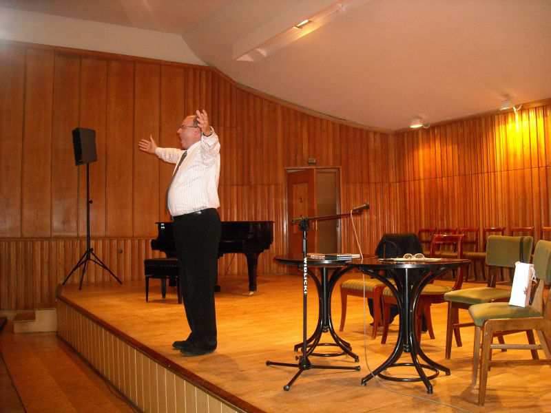 To dopiero początek – tłumaczył Klubowiczom profesor Pospiech. Katedra i Zakład Muzykoterapii cały czas się rozwija, tym bardziej, że ma tę znakomitą  możliwość prowadzenia badań pośród pacjentów Collegium, dla których każdy zabieg wiąże się ze stresem,  który udaje się łagodzić odpowiednio dobraną muzyką. Nasz gość, prawdziwy pasjonat metody leczenia muzyką, opowiada, że największym jego marzeniem jest rozpropagowanie śpiewoterapii. Chciałbym, żeby bydgoszczanie śpiewali dla przyjemności, bez startowania w konkursach, ścigania się, kto lepszy. Nic w tym dziwnego, że Profesorowi śpiew jest tak bliski, i że szczególnie na nim się zna, bowiem w biografii i w sercu Wojciecha Pospiecha właśnie śpiew zajął wyjątkowo dużo miejsca. Jest przede wszystkim śpiewakiem, jedynym w Polsce wykształconym tzw. haute contre tenorem, pedagogiem i naukowcem. Ukończył Państwową Wyższą Szkołę Muzyczną w Poznaniu, gdzie obok śpiewu solowego studiował śpiew oratoryjno-kantatowy u samego Stefana Stuligrosza, zresztą śpiewał również w jego chórze Poznańskie Słowiki. Ponadto odbył specjalistyczne stypendium w Konserwatorium Królewskim w Brukseli w zakresie wykonawstwa muzyki dawnej wczesnym technikami wokalnymi. Swe posłannictwo znalazł w kameralistyce,  przez wiele lat był śpiewakiem madrygalistów Capelli Bydgostiensis. Na swym artystycznym koncie ma wiele nagrań archiwalnych, koncertował w wielu krajach. Obecnie zajmuje się intensywnie pedagogiką, m.in. uczy w PZSM w Bydgoszczy i Akademii Muzycznej w Łodzi.